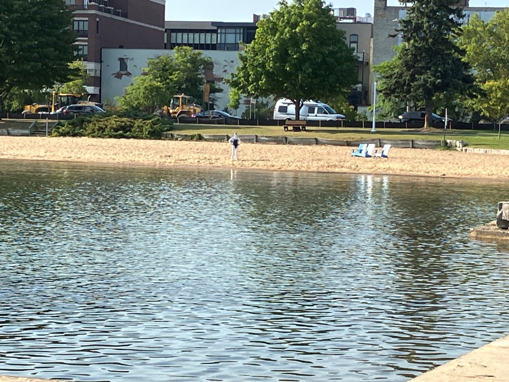 I was pretty pleased with myself for having finished the peninsula route. What an elegant route, I thought to myself. We settled onto a course for Elk Rapids, the next town over from Traverse City. Adding the miles in my head, I realized if I were to stop there, it would be 47.5 miles. So close to 50. (See here for a list of swimmers who’ve completed distances of over 50 miles/80 km in neutral currents without wetsuits). I considered going to Elk Rapids, then heading back to Traverse City, which would take us almost to 60 miles. But I noticed I had depleted myself trying to maintain my pace in the wind, and was now struggling to stay warm despite the 73 degree water. Sam used google earth and located a nature preserve north of Elk Rapids, which would take us to just over 50 miles. “Perfect!” I told him, feeling encouraged.